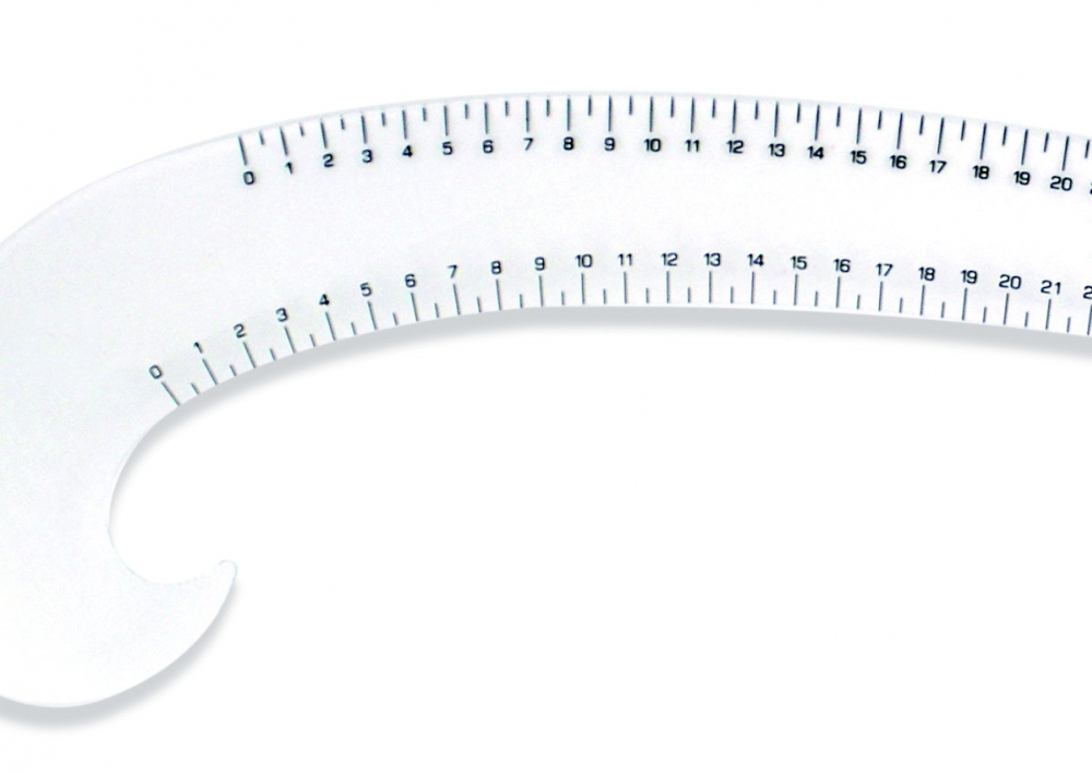 Curvilinea a sciabola in plexiglas trasparente da 3mm con centimetri sopra e sotto