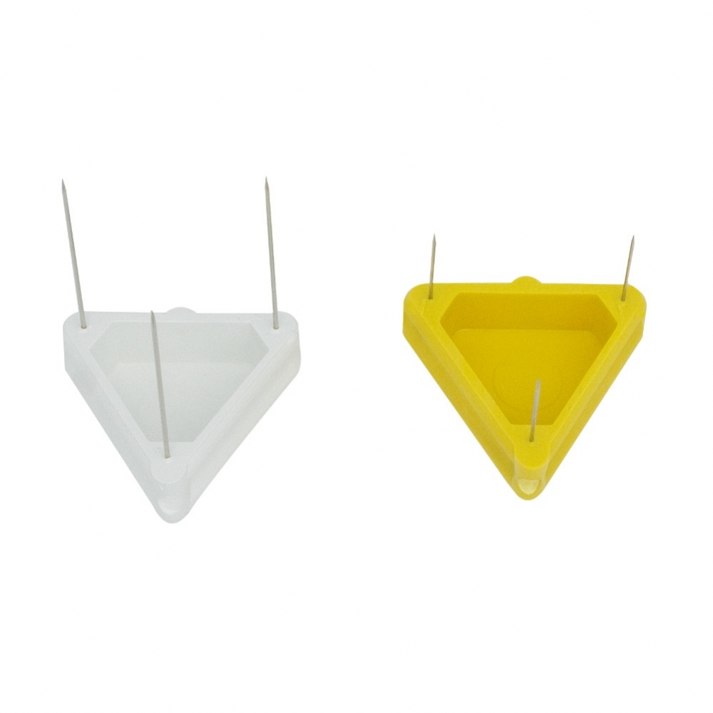 Spillone triangolare di plastica, misure 40mmx40mmx40mm.