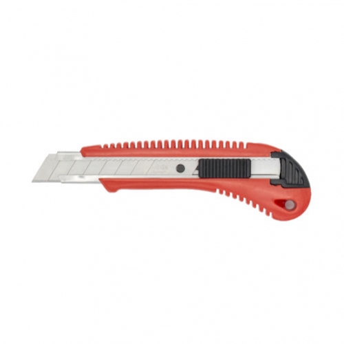 Cutter con impugnatura in metallo e clip per taschino, monta lame in acciaio al carbonio.